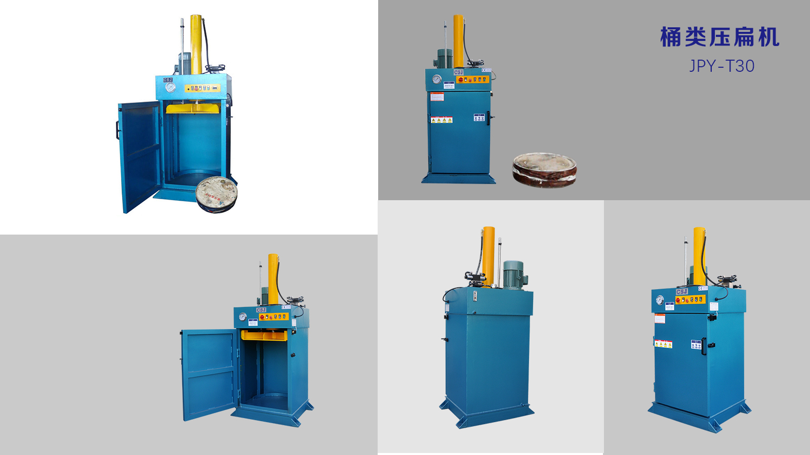 适用于油桶、油漆桶等桶类物品压缩成块,不用捆包处理;应用于产生较多废弃桶类的各行业使用。